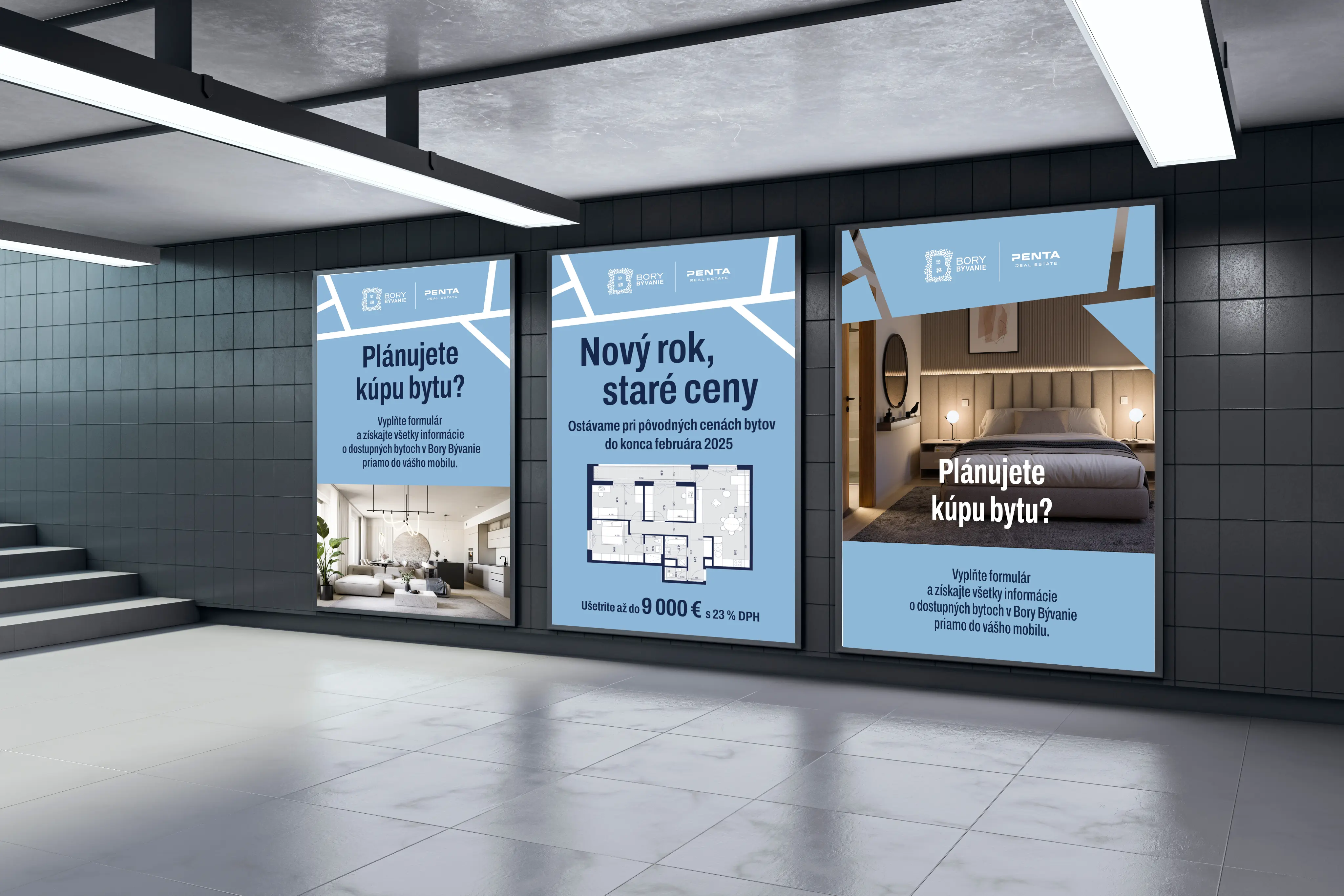 Penta Real Estate postupne buduje štvrť Bory – od retailovej až po rezidenčnú výstavbu.  Stavia už x-tú etapu, ale v hlavách ľudí sú Bory stále len nákupným centrom alebo nemocnicou. Ako presvedčiť Bratislavčanov, že Bory sú komplexná štvrť a ideálne miesto na bývanie? Bory Bývanie potrebovali update positioningu, claim a konzistentnú identitu.